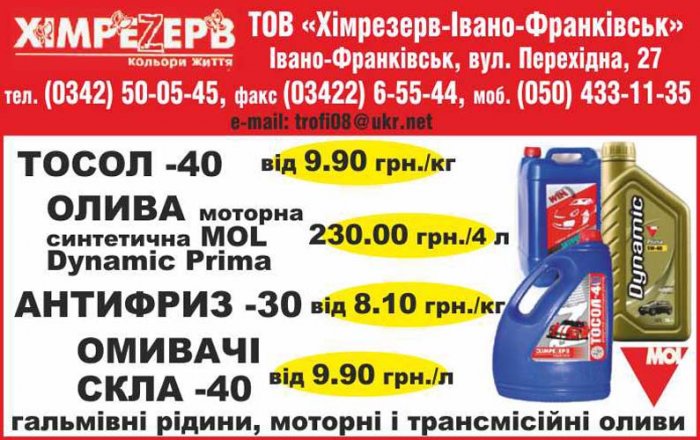 - автомобільна косметика: тосол, мастила, гальмівні рідини, антифриз;